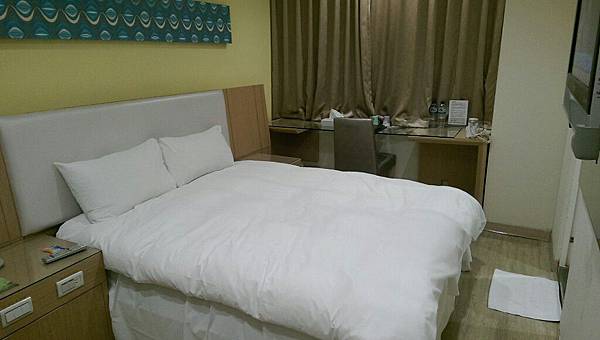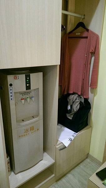 房間內僅約兩坪大,該有的都有。VOD隨選視訊、第四台、液晶螢幕、保險櫃...等。其中,開飲機有加分,不過我沒用到,下面的冰箱真不怎麼涼
