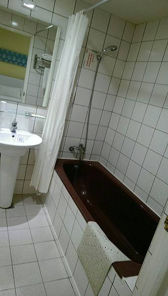 這房型好像都附有舊型的浴缸,雖然官網註明只有淋浴式的,但訂房前可以先確認。浴缸上塑膠防滑墊的背後髒髒的,很像發霉的橡膠洗不掉,扣分